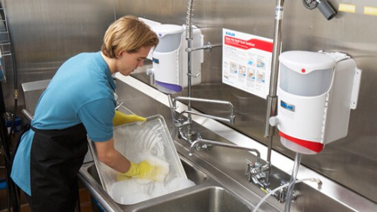 Il detergente solido manuale di Ecolab con dispenser mobile ti aiuta a ottenere risultati splendenti riducendo al minimo gli sprechi. Pronto all'uso in pochi secondi, permette di riempire efficacemente i lavelli con una diluizione sempre accurata.